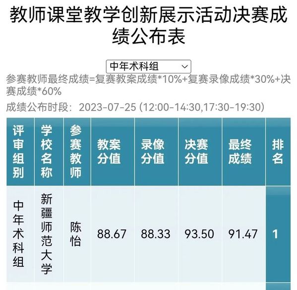 决赛成绩公布表