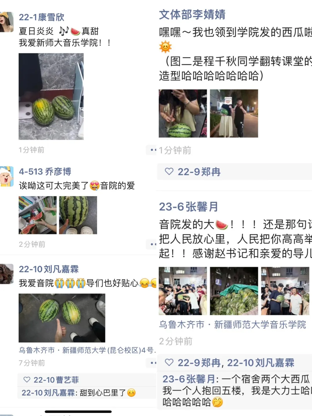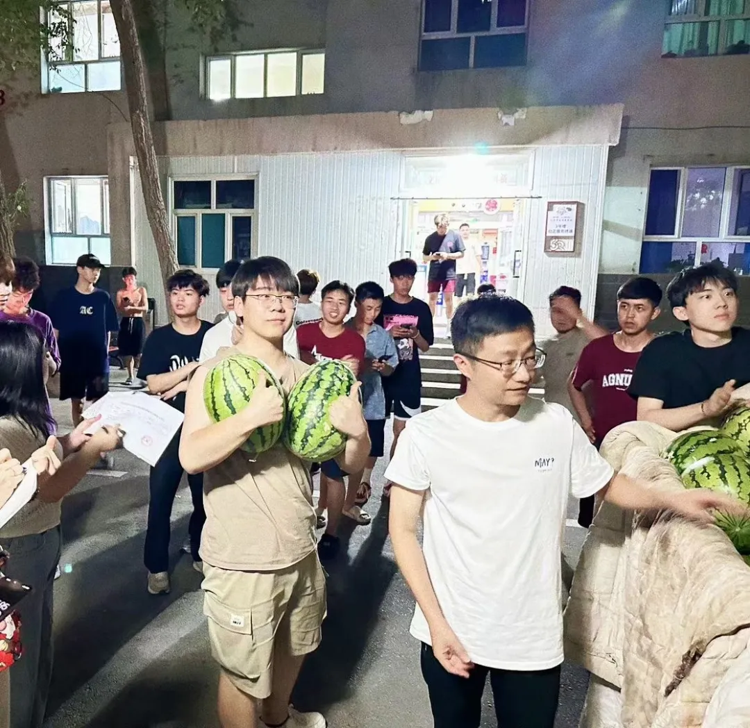 党委副书记、纪委书记赵士城、全体学工办老师现场为在校的130余间本科生、研究生宿舍发放西瓜。