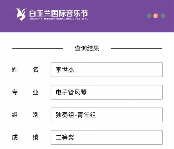 张园园老师指导的音乐表演21-6班李世杰荣获独奏组-青年组二等奖。