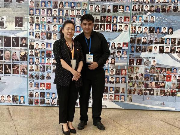 陈怡教授和木再帕尔·木合塔尔在第六届中国·哈尔滨之夏音乐会国际手风琴艺术周活动现场