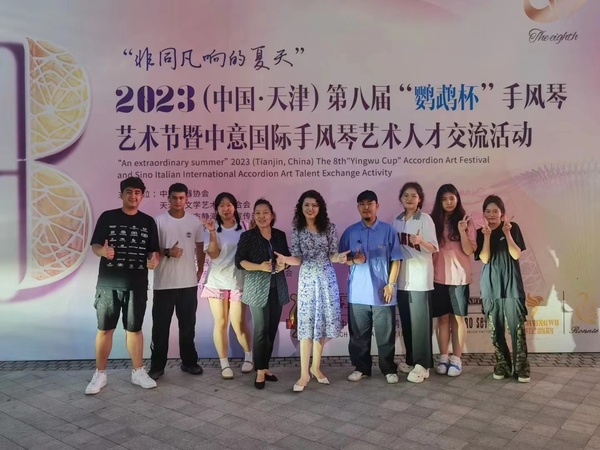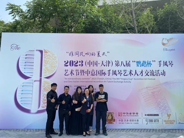 师生在2023(中国·天津)第八届“鹦鹉杯”手风琴音乐节暨中意国际手风琴艺术人才交流活动现场与沈阳超凡电竞