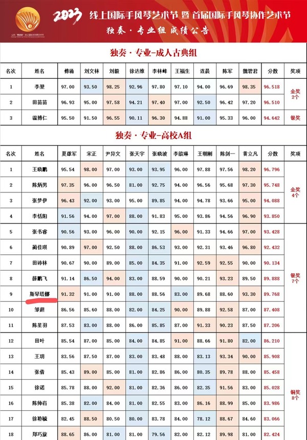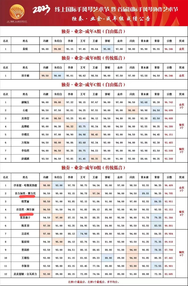 2023中国·山东“鹦鹉杯”线上国际手风琴艺术节暨首届国际手风琴协作艺术节获奖名单