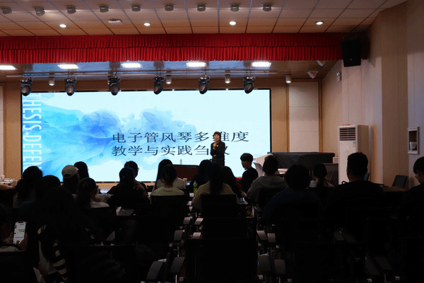 28日下午16:30,颁奖典礼结束后,冯捷副教授进行了题为《电子管风琴多维度教学与实践刍议》的学术讲座,从课程设置、院系特色、结构规划等多方面讲解西安超凡电竞