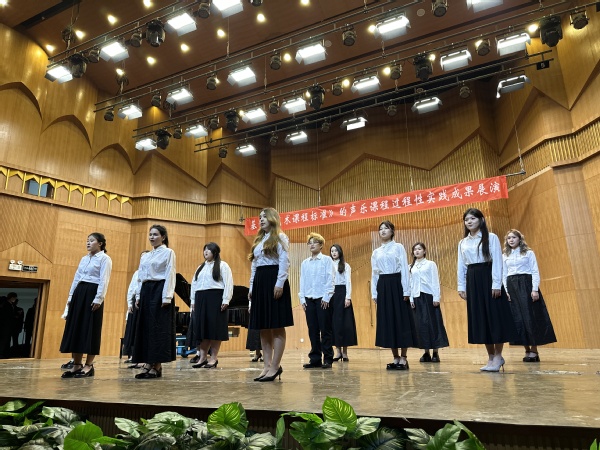 在民歌演唱中,同学们通过默契的配合与和谐的音色,将一首首经典曲目演绎得生动而感人。