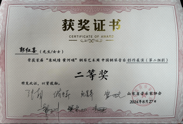 推送的由郭红喜原创的钢琴作品《山乡意趣》获得大赛二等奖。