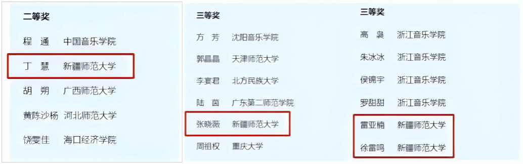 键盘系教师丁慧荣获甲A声乐艺术指导组二等奖,张晓薇荣获甲B声乐艺术指导组三等奖,雷亚楠、徐雷鸣荣获甲B重奏组三等奖。