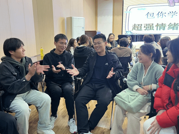活动氛围渐入佳境,进入了“情绪词条”环节,同学们大胆地分享了自己的“坏情绪”,并在带领者的引导下尝试去接纳,其他同学也纷纷提出自己的建议,并得到采纳。带领者总结说到:“遇到问题时主动求助是一个很勇敢的行为,但情绪无关对错,我们需要学会接纳情绪并找到出口,通过分享,可以让大家给予理解和支持,也能让自己在倾诉中得到释放。”