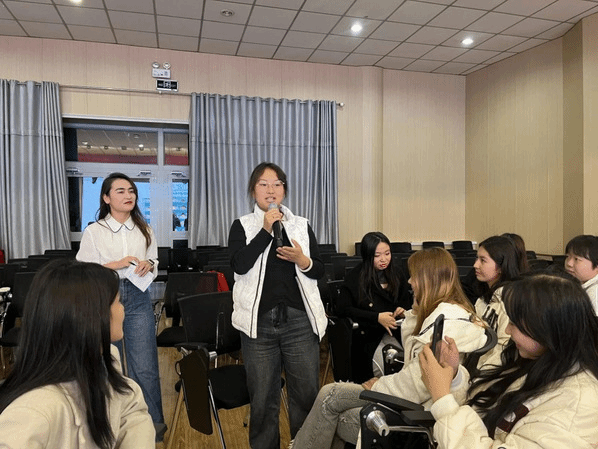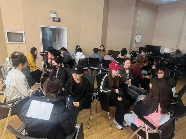 活动还开展了“车轮约会”游戏。四组同学们分别围成了两组车轮,互相分享近一周发生的最开心的事和最骄傲的事,大家从最开始拘谨和紧张,慢慢变得活跃起来,侃侃而谈,活动现场充满温暖和欢乐。