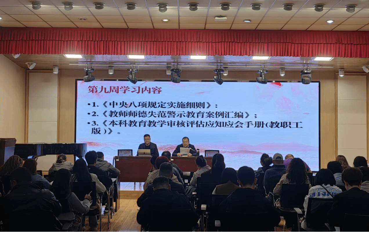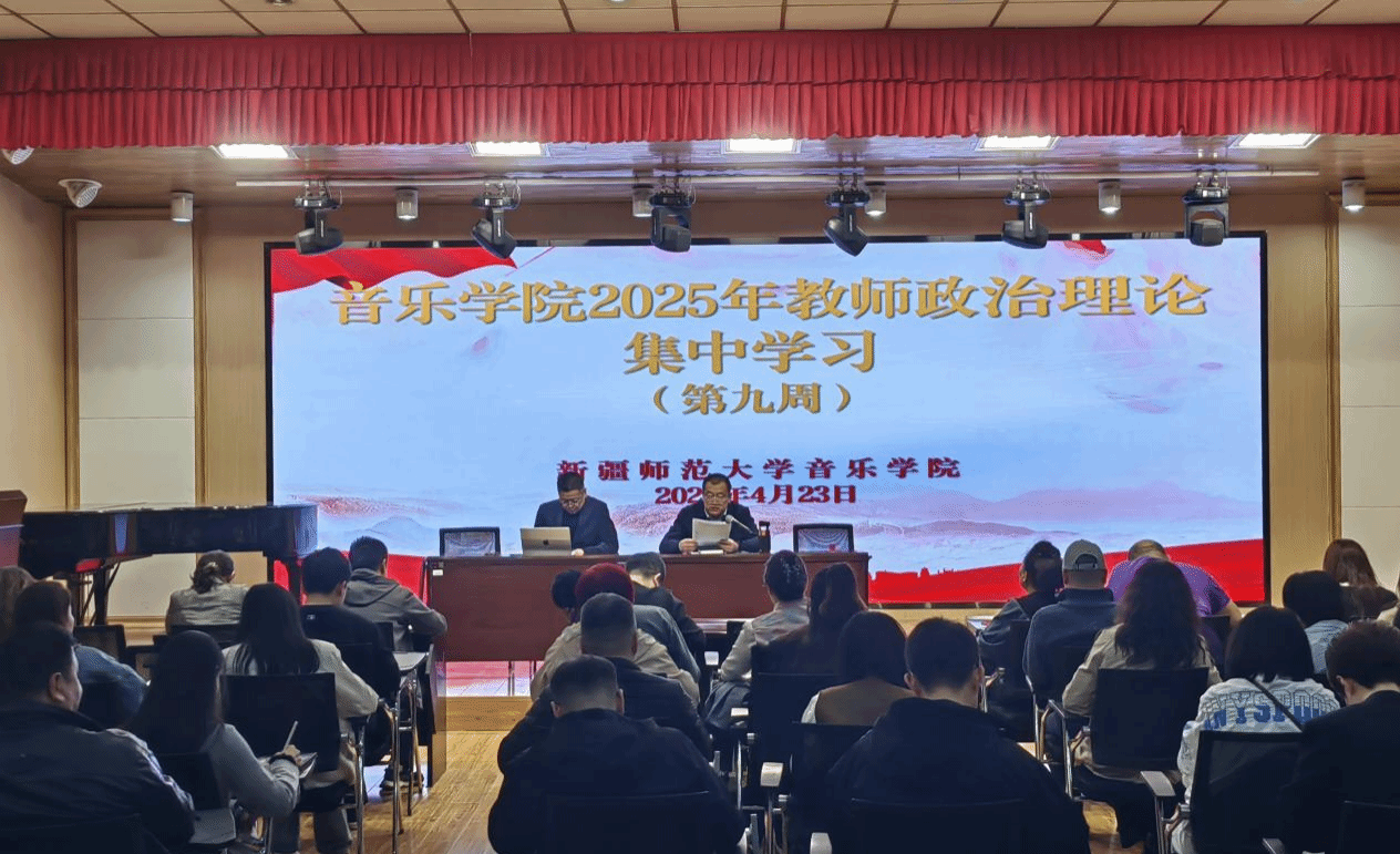 为加强政治理论修养、提升师德师风建设水平、筑牢本科教育教学审核评估思想基础为目标,超凡电竞 2025年4月23日在艺术楼正声厅组织开展2025年上半年第九周政治理论集中学习,党委书记杨志刚领学,超凡电竞 全体教职工参与学习。