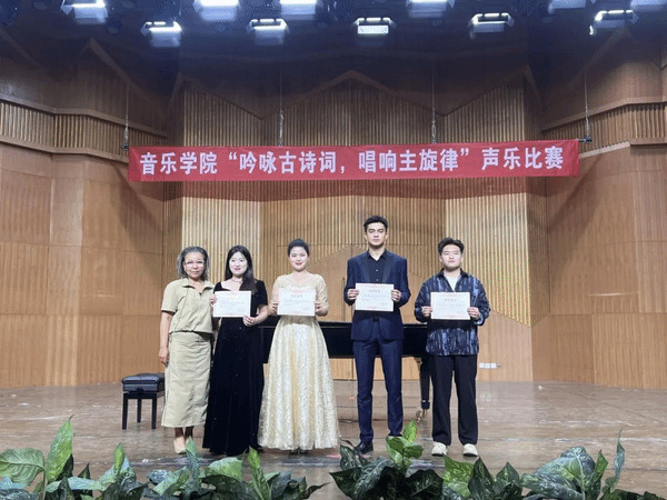 选手中女生嗓音婉转动听、男生浑厚有力,与具有中国高雅文化与深刻哲理的古诗词相互交织,呈现了一场精彩的视听盛宴,曲目有弘扬儒家先贤坚守幽兰品质的《幽兰操》;有借赤壁怀古抒情、意境开阔旷达的《大江东去》;有通过时空的跳跃感慨人生悲欢离合的《虞美人·听雨》;有豪放派词人表达不与世俗同流合污的追求的《青玉案·元夕》……选手们在诠释音乐作品中也让中国的古典诗词焕发出青春的风采,给在场的师生留下了深刻的印象,为大家打开了走近中国文学与音乐艺术的新视角。