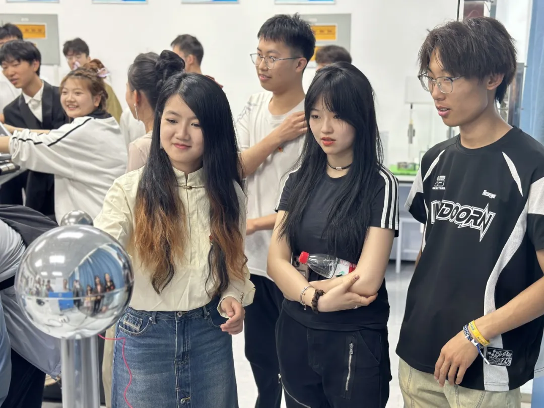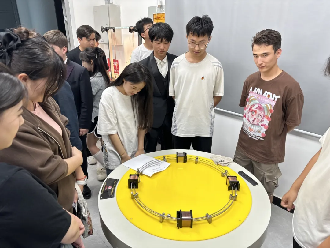的高瑶旭同学带领全体同学参观物理科普实验室,通过亲自动手学习物理基础知识,并号召大家积极参与科研项目和学术活动,推动学科的发展和进步,持续激发同学们的学习热情,培养他们对物理学习的兴趣和热爱。