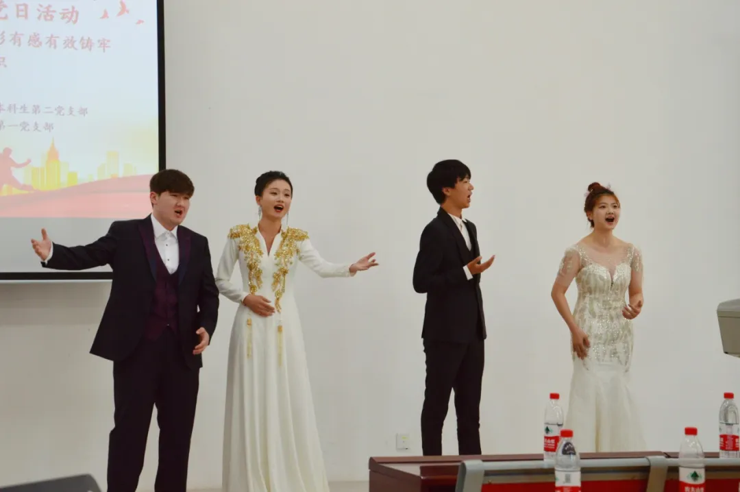的党员、团员们为大家表演了精心准备的《领航》《我爱你中国》《九州同》等曲目,在歌声中回顾了中国共产党带领中国人民开天辟地、改天换地、自强不息、创造伟业的生动历史。