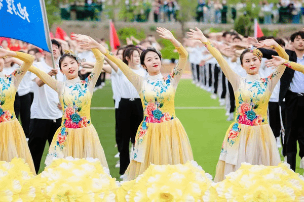 舞蹈系表演的《鼓旗伞绸》为运动会的的开幕式表演拉开了帷幕。舞蹈表演精彩纷呈、端庄大气,引得现场欢呼阵阵、掌声连连。